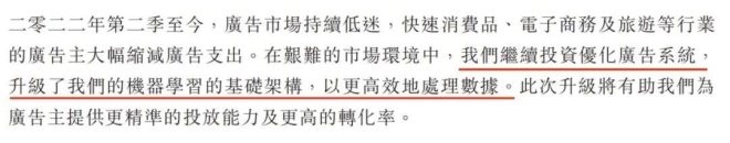 阿里巴巴近幾年都在強(qiáng)調(diào)“數(shù)智化”這一概念,其重點(diǎn)是通過(guò)一個(gè)平臺(tái)來(lái)做好智能投放、常態(tài)運(yùn)營(yíng)管理以及數(shù)據(jù)反饋等多個(gè)環(huán)節(jié),為廣告主把控全流程全域的經(jīng)營(yíng)和增長(zhǎng)。騰訊在今年一季度的財(cái)報(bào)中特別強(qiáng)調(diào):在艱難的市場(chǎng)環(huán)境中持續(xù)投資優(yōu)化了廣告系統(tǒng),升級(jí)機(jī)器學(xué)習(xí)的基礎(chǔ)架構(gòu),可以更高效處理數(shù)據(jù),并且提升投放精準(zhǔn)性和更高轉(zhuǎn)化率。同樣,微博廣告也強(qiáng)調(diào)當(dāng)下是“智投時(shí)代”,需要平臺(tái)針對(duì)商業(yè)化工具和產(chǎn)品進(jìn)行持續(xù)升級(jí)。