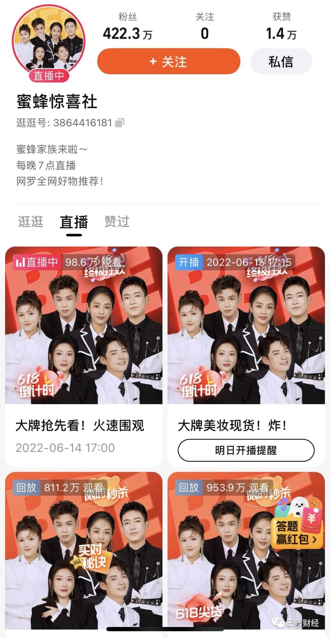 另外值得注意的是,薇婭助播組成的“蜜蜂驚喜社”表現(xiàn)則更加亮眼,雖然只有400萬粉絲,但是5月26、27號的觀看人次分別為2173萬和1410萬。近三場直播觀看人次也都超過800萬。