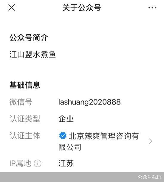 北京商報記者從江山盟·品質(zhì)川菜的公眾號上看到,其認證主體為北京辣爽管理咨詢有限公司(以下簡稱“北京辣爽”)。天眼查顯示,北京辣爽公司法定代表人是李德坤,李德坤正是一點嗨公司法定代表人。