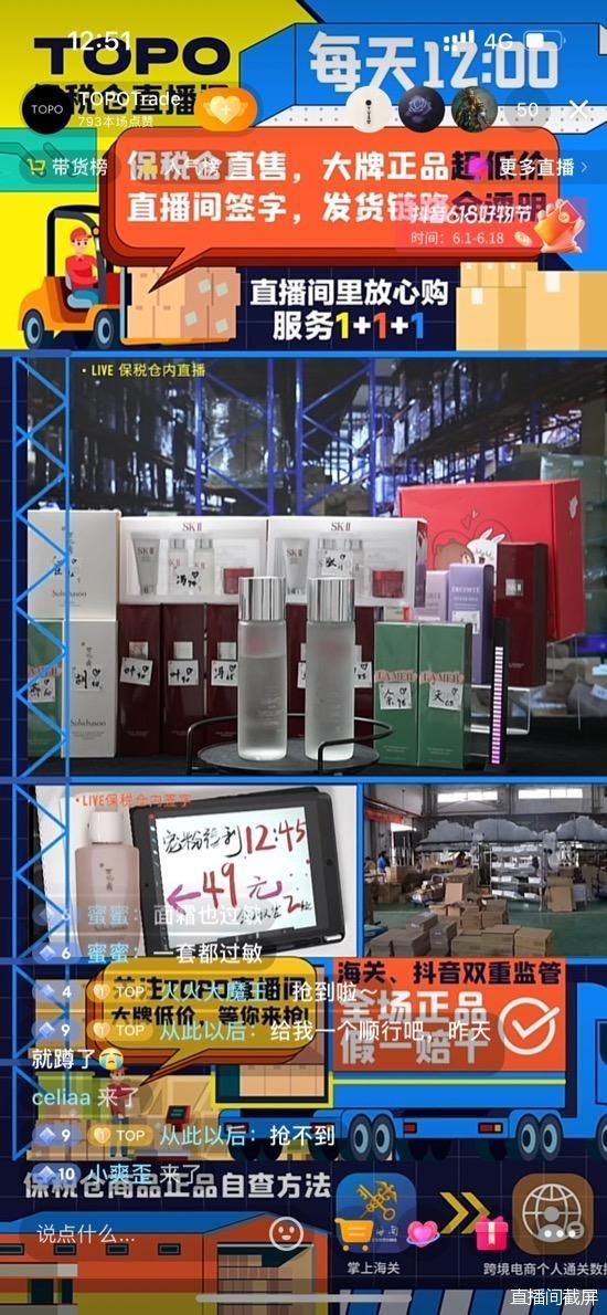 北京商報記者發(fā)現(xiàn),蜜蜂驚喜社在“6·18”首場預售中將直播間搬進了保稅倉,“香菇來了”還將在6月15日進行了“保稅倉大牌美妝節(jié)”。除此之外,還有不少中腰部主播如烈兒寶貝、林依輪、陳潔kiki等主播都選擇了保稅倉渠道的貨源,通過“低價、正品、直發(fā)”的標簽來吸引消費者。