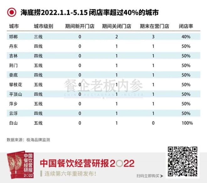 也就是說,結(jié)合去年的關(guān)店情況,從海底撈2022年上半年的閉店情況來看,可以總結(jié)出以下幾點動態(tài):