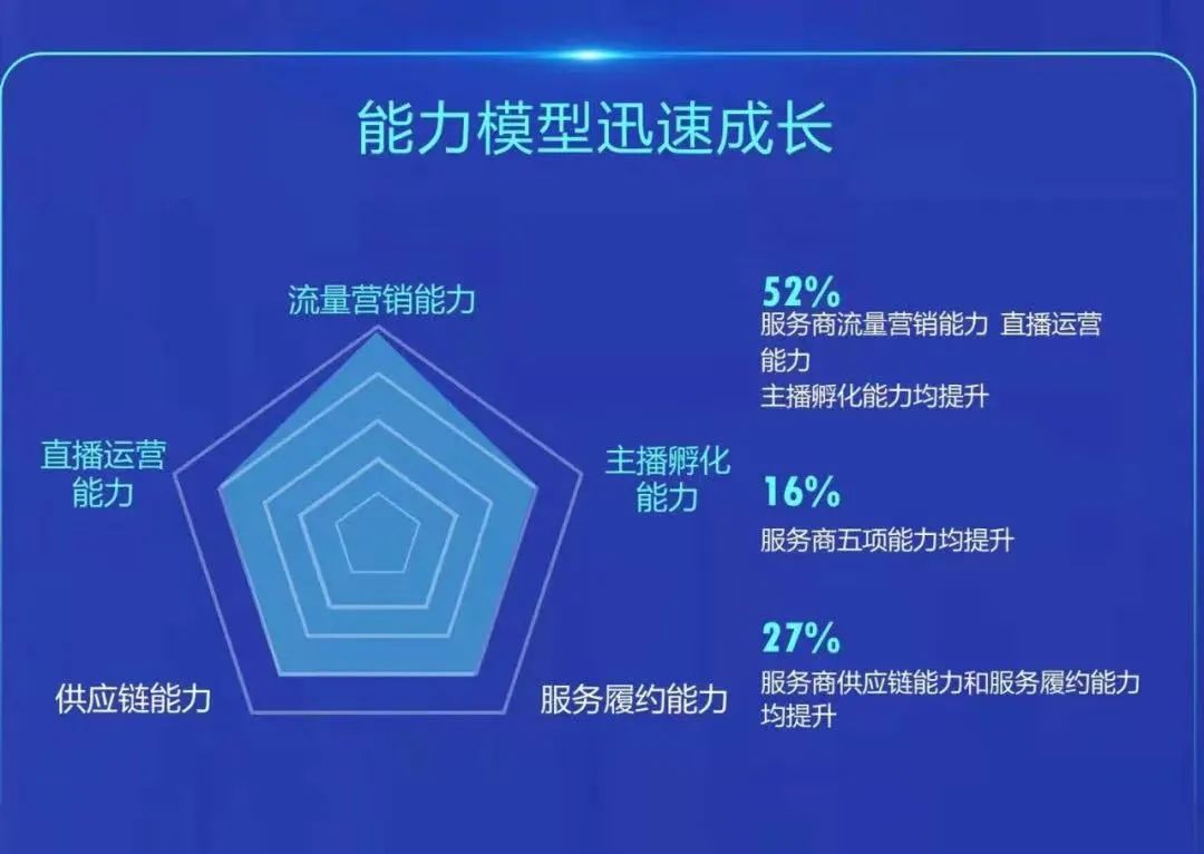 事實上,在快手電商服務(wù)商生態(tài)與區(qū)域運營負責人李叢杉的語境中,她把服務(wù)商應(yīng)該具備的能力總結(jié)成“五力模型”,包括流量運營能力、直播運營能力、主播孵化能力、供應(yīng)鏈能力,服務(wù)履約能力。