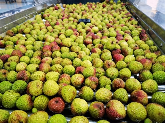 荔枝正通過全自動分揀預(yù)冷系統(tǒng),既高效,又保鮮 攝影/紅豆
