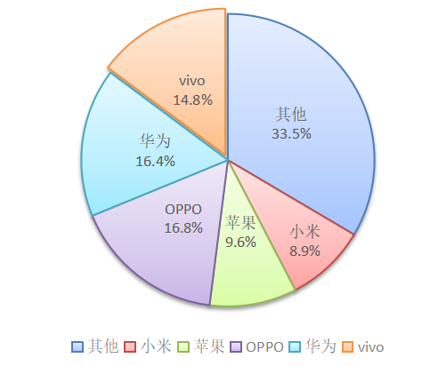 圖:2016年中國智能手機(jī)市場國產(chǎn)品牌份額