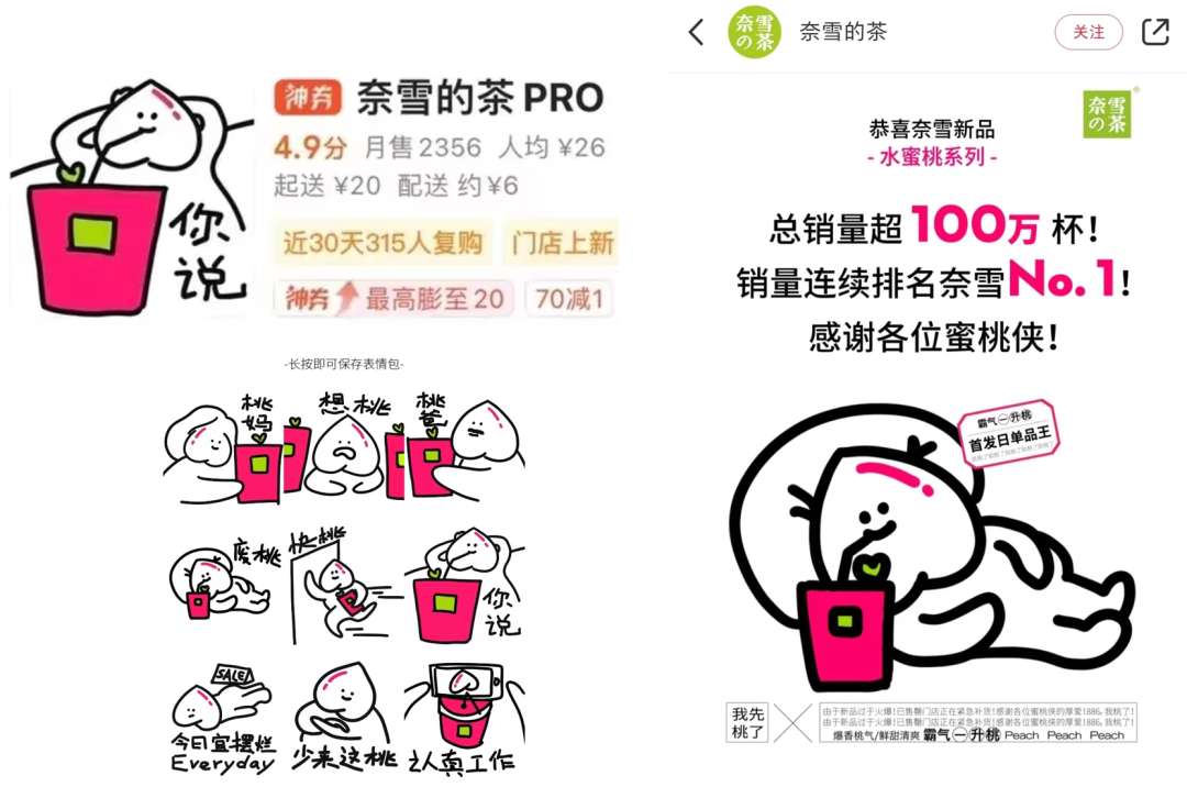 一波波的騷操作,直接帶火了奈雪的水蜜桃系列飲品。官方稱,這一系列新品的總銷量已經(jīng)突破100萬杯,銷量連續(xù)排名第一。