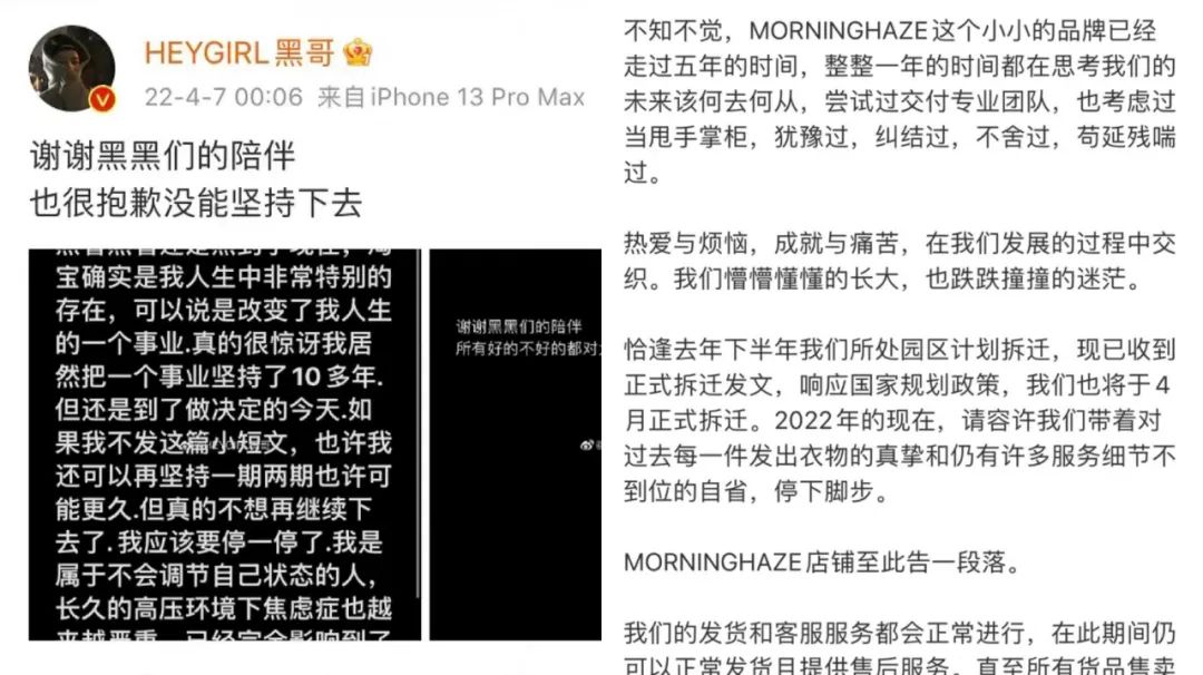 這些數(shù)據(jù)折射進(jìn)現(xiàn)實(shí),一個(gè)側(cè)面是,mylittlebanana、HEYGIRL黑哥、MORNINGHAZE等一批網(wǎng)紅店鋪或宣布閉店、或轉(zhuǎn)戰(zhàn)其他平臺(tái),同時(shí)還有不少中小個(gè)體賣家開始謀求轉(zhuǎn)型、轉(zhuǎn)行。