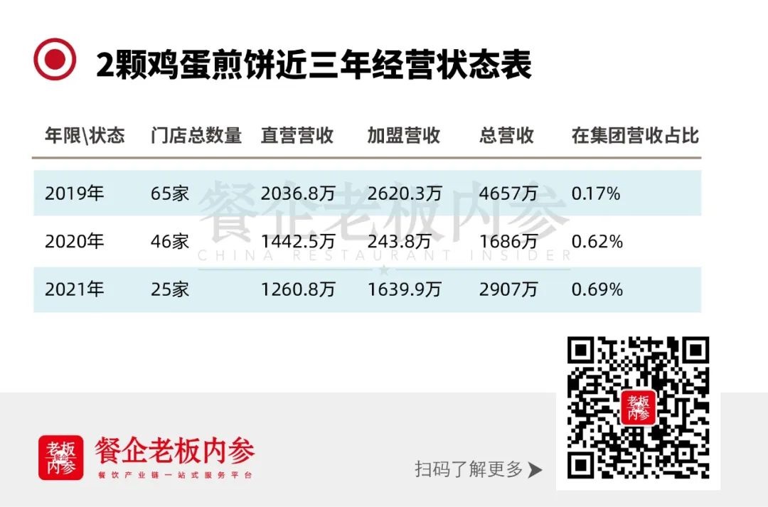 2019年8月,招股書中披露“2顆雞蛋”加盟門店為41家,而在2019年年底更新的招股書中顯示門店數(shù)量沒有任何變化,仍為41家。在接下來的2020-2021年間,也只開出22家新店。