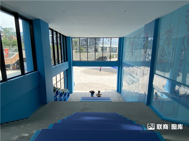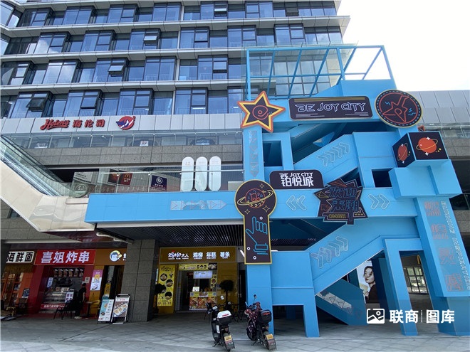 鉑悅城結(jié)合自己開放式街區(qū)的特性,打造了一條“劇場式階梯”,鮮明的色彩,吸引不少消費(fèi)者前來打卡。同時,這也能為顧客提供了開放的休憩點(diǎn)。