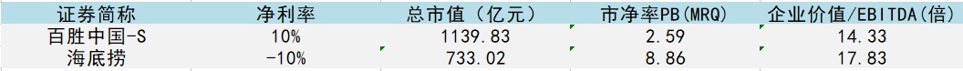如圖所示,以國內(nèi)同樣在港股上市的餐飲集團海底撈作為對比,2021年百勝中國凈利率為10%,同期海底撈凈利率為-10%。在盈利水平遠高于海底撈的情況下,截至發(fā)稿,百勝中國市凈率PB為2.59倍,低于海底撈的8.86倍;在EV/EBIT(企業(yè)價值/息稅前利潤)方面,百勝中國EV/EBIT為14.33倍,亦低于海底撈的17.83倍。