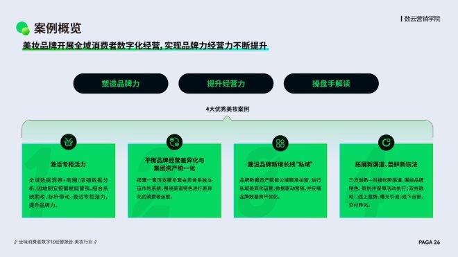 為此,白皮書案例部分從數(shù)云服務的近千家美妝品牌中,精選出不同發(fā)展階段的美妝品牌,從該階段品牌的通用需求點切入,輸出“產(chǎn)品+服務”的組合拳打法,如