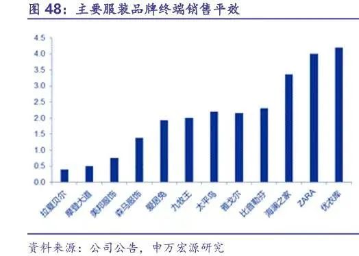 部分服裝品牌銷售年坪效,圖據(jù)申萬宏源