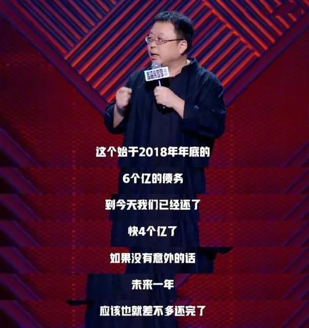 2020年底,在《脫口秀大會》第三季上,羅永浩表示,始于2018年年底的6億債務已還清4億,剩下的預計一年內(nèi)還清。