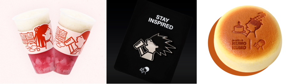 此后,喜茶官方更頻繁地玩起了限定LOGO,在520組cp變身“囍茶”,與藤原浩聯(lián)名時(shí)燙個(gè)黑色爆炸頭,與kumokumo聯(lián)名時(shí)又變成舉著小蛋糕慶祝的小人。