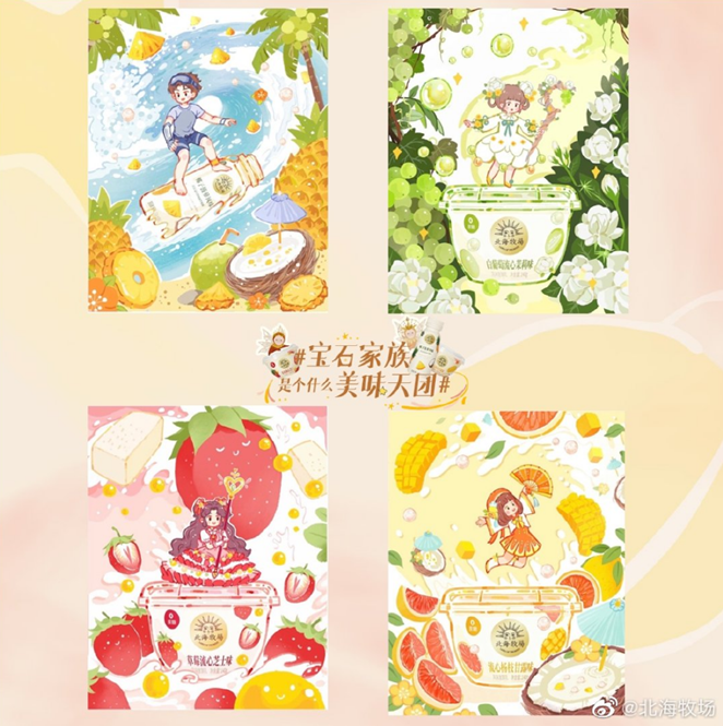 北海牧場(chǎng)則邀請(qǐng)網(wǎng)友對(duì)產(chǎn)品進(jìn)行擬人化創(chuàng)作,內(nèi)容需要結(jié)合產(chǎn)品口味、食材等特點(diǎn),并最終在微博平臺(tái)進(jìn)行投票。畫手們深度參與創(chuàng)作,讓他們獲得成就感的同時(shí),也會(huì)加深對(duì)品牌的印象。