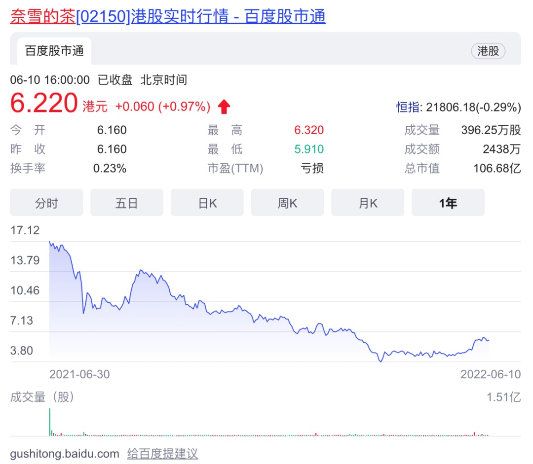 財報顯示,2021年,奈雪的茶虧損1.45億元。股價從上市時的17.12港元/股下跌到如今的6港元/股左右,跌幅為65%左右。也正由此,有心沖擊IPO的喜茶在2022年初不光主動降價,告別“30元”價位段,甚至還推出了客單價僅為個位數(shù)的飲品。