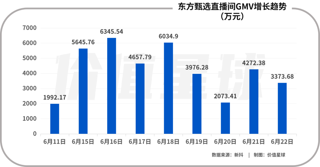然而自6月以來,東方甄選的雙語直播受到網(wǎng)友廣泛關(guān)注,直播間人氣有所上升。公開信息顯示,從6月10日開始,東方甄選粉絲、直播間在線人數(shù)以及GMV(商品銷售總額)均出現(xiàn)爆發(fā)式增長(zhǎng),抖音賬號(hào)粉絲從不到100萬快速增長(zhǎng)至6月21日的1770萬。其直播間單日GMV快速提升到千萬級(jí)別,6月16日其直播間單日GMV甚至超過6300萬元。