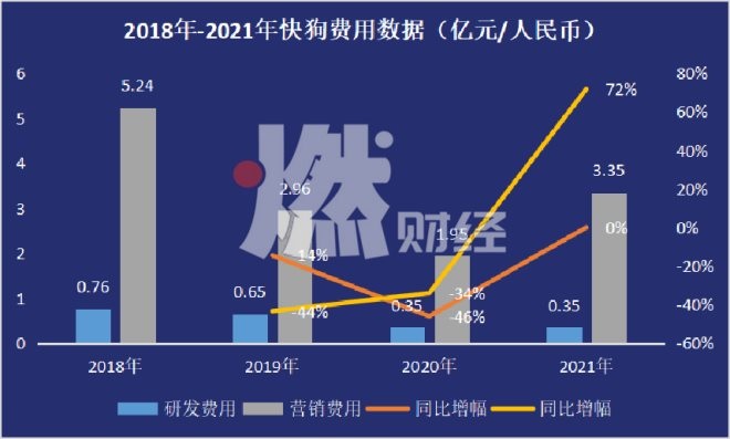 但與研發(fā)費用相悖的,是營銷費用的提升。2021年,快狗的營銷費用為3.34億元,較上一年同比增長72%。對此,業(yè)界分析師普遍認為,這主要是因為2019年和2020年連續(xù)連續(xù)兩年控制營銷費用后,快狗承受了來自競爭平臺的壓力。