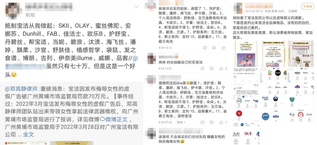 事件發(fā)酵后,微博用戶@鄧高靜律師 表示將站出來(lái)帶領(lǐng)大家維權(quán),向廣州黃埔區(qū)監(jiān)管局進(jìn)行了投訴,相關(guān)部門于2022年3月28日對(duì)廣州寶潔有限公司涉嫌發(fā)布違法廣告的行為立案調(diào)查。
