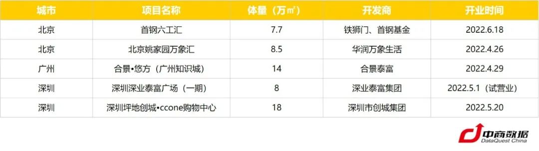 2022Q2四大一線城市代表性開業(yè)項(xiàng)目:
