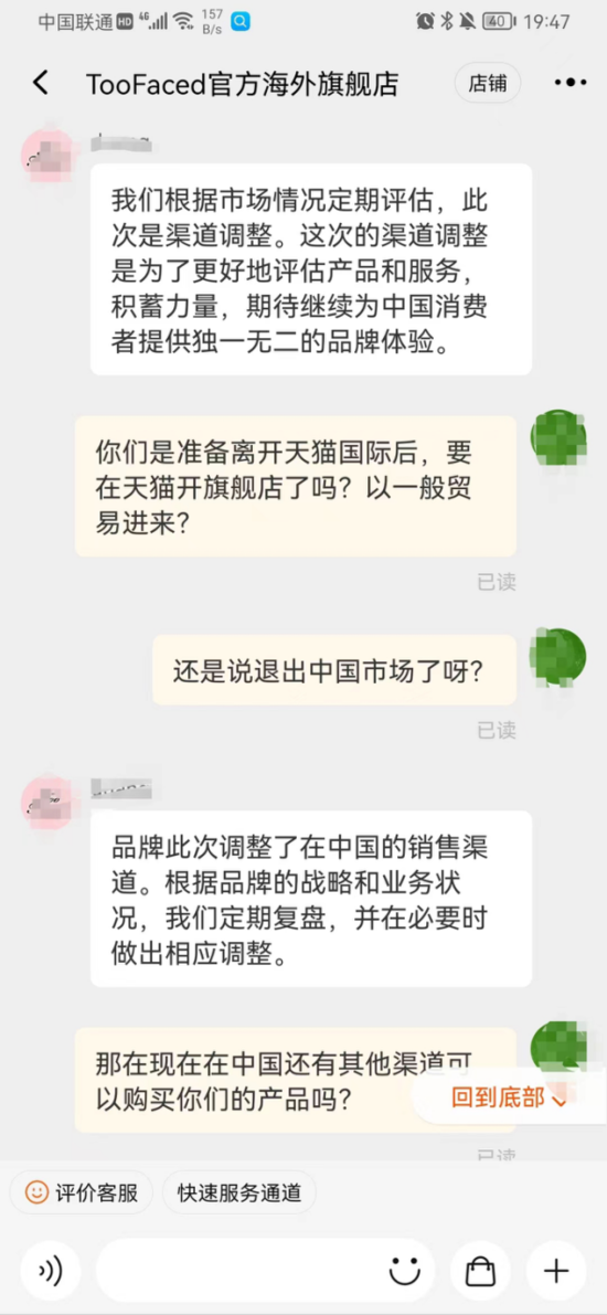 ▍與Too Faced官方海外旗艦店客服聊天截圖