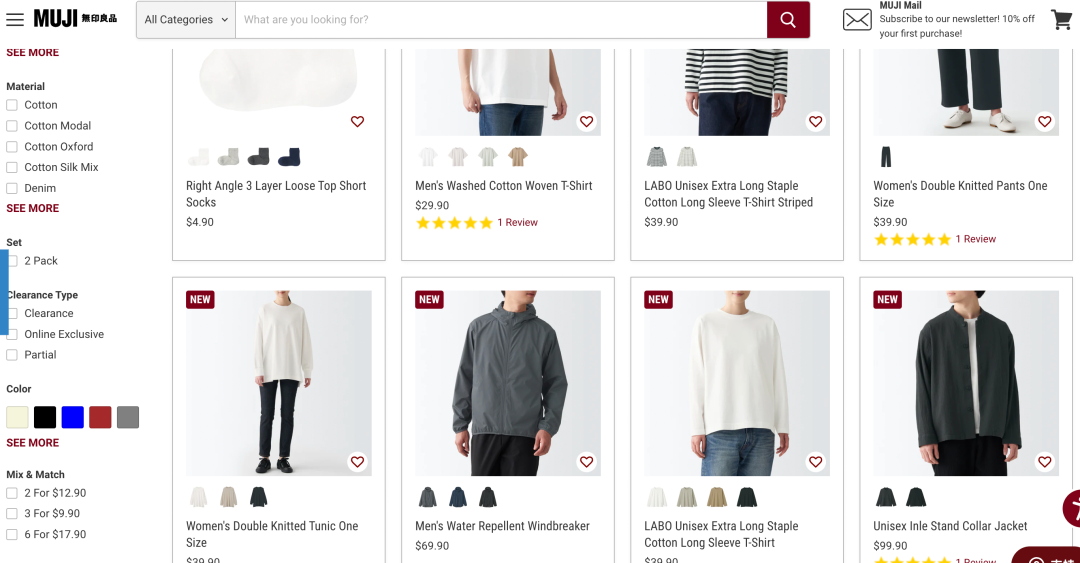 按照MUJI此前在國內的定價,品牌旗下的襯衣、外套等產品價格是略微高于優(yōu)衣庫的。但經過幾次調價后,從MUJI的美國官網來看,目前品牌的價格線基本回歸正常水平,部分單品甚至與優(yōu)衣庫基本款的價位持平。
