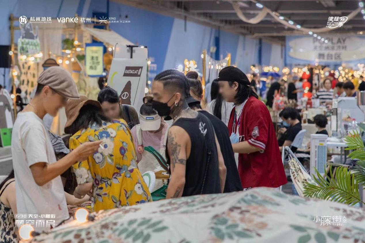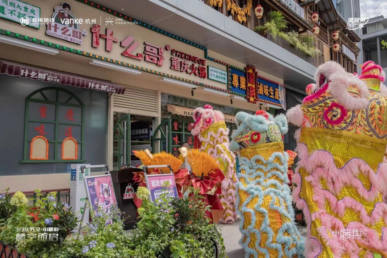作為「五常車輛段上蓋項(xiàng)目」的社區(qū)商業(yè)縮影,天空·小藤街以社區(qū)商街為載體、地鐵5號(hào)線五常站為接口,結(jié)合跨界藝文“出圈”的形式,于杭州城市發(fā)展圖景中嵌入了一片閃耀的拼圖,在6月30日開街儀式上,點(diǎn)燃全城激情。