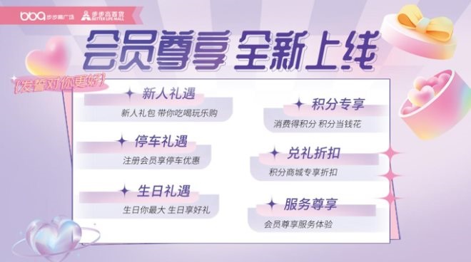 步步高各店也同步進(jìn)行了全新版會員權(quán)益發(fā)布儀式,向會員公布了步步高百貨在三季度全新升級的6大會員尊享服務(wù)。①新會員入會禮:升級后新會員入會不僅可繼續(xù)享受購物禮券,還可加享餐飲配套禮;②停車禮遇:會員除可享免費停車時長外,新增積分抵扣停車費,超過免停時間享受99積分兌1小時停車等服務(wù);③積分兌禮折扣:金卡會員享積分換禮9折優(yōu)惠,鉆卡會員享積分換禮8折優(yōu)惠;④服務(wù)尊享:會員可享全年洗車、美發(fā)8折優(yōu)惠,金、鉆卡會員還可享受定期免費洗車及美發(fā)等貼心服務(wù);⑤生日禮遇:鉆卡會員生日可獲得鮮花賀卡一份,由步步高門店郵寄到家,同時金卡會員生日當(dāng)月單票購物滿1000元可領(lǐng)取100元百貨無門檻購物卡券,鉆卡會員生日當(dāng)月單票購物滿2000元可領(lǐng)取150元百貨無門檻購物卡券;⑥部分門店還增加了會員升級禮、消費禮等福利:升級金卡鉆卡可享免費觀影福利;每月會員日15日,鉆卡會員可獲贈免費電影票及家居服務(wù)套券等福利;重大節(jié)假日消費前100名會員可得驚喜購物禮;會員還可加享免費皮具護理、修眉等服務(wù)。