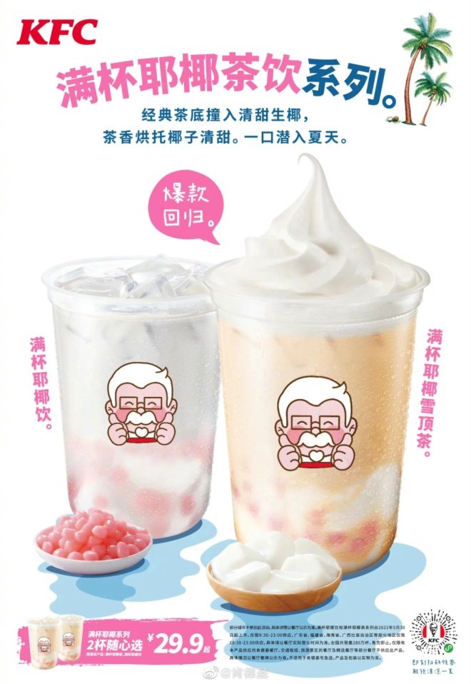 圖片來(lái)源:肯德基肯德基推出“滿杯耶椰茶飲系列”
