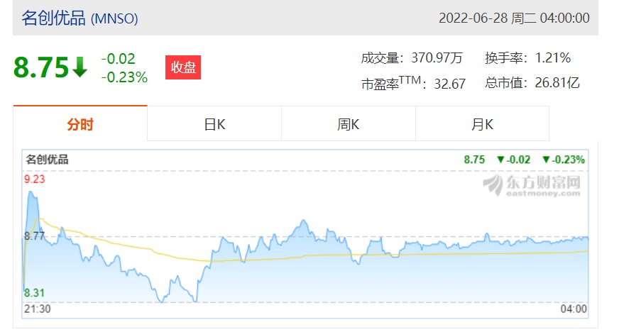 然而名創(chuàng)優(yōu)品在美股的夢幻開局并沒有持續(xù)下來,此后曾出現(xiàn)下跌,截至6月28日,名創(chuàng)優(yōu)品市值已縮水至26.81億美元,其股價也從最高的37美元下跌至每股8.75美元。
