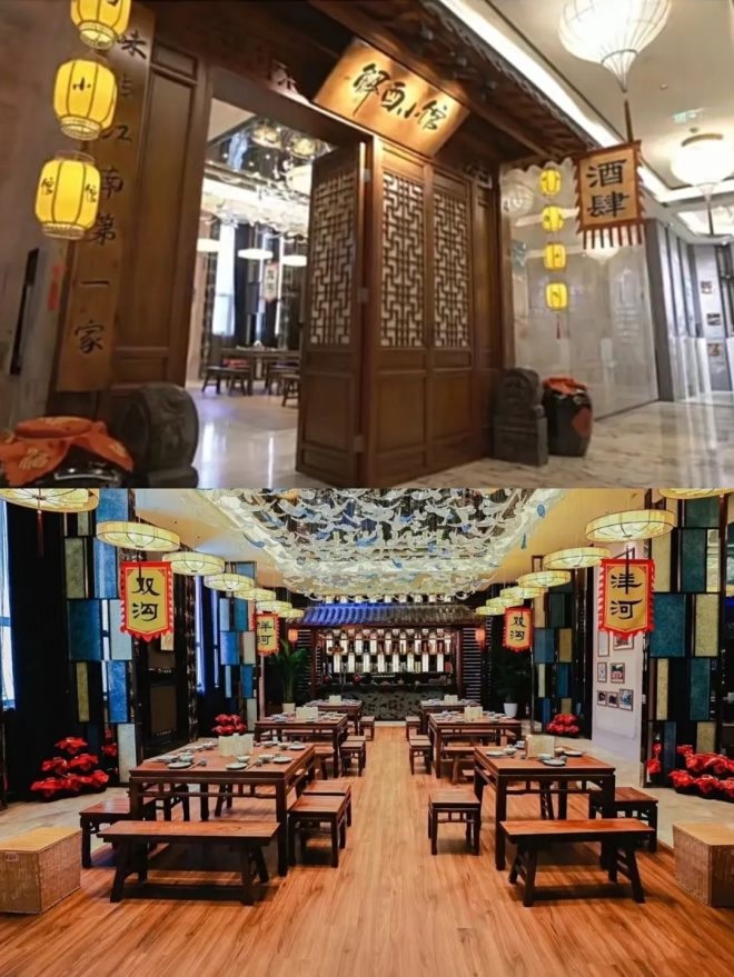 去年五一前后,和府撈面專門推出副牌——落地于上海的和府小面小酒。中式國風裝修,除了自家招牌小面外,還加入川菜、燒烤等融合菜系;
