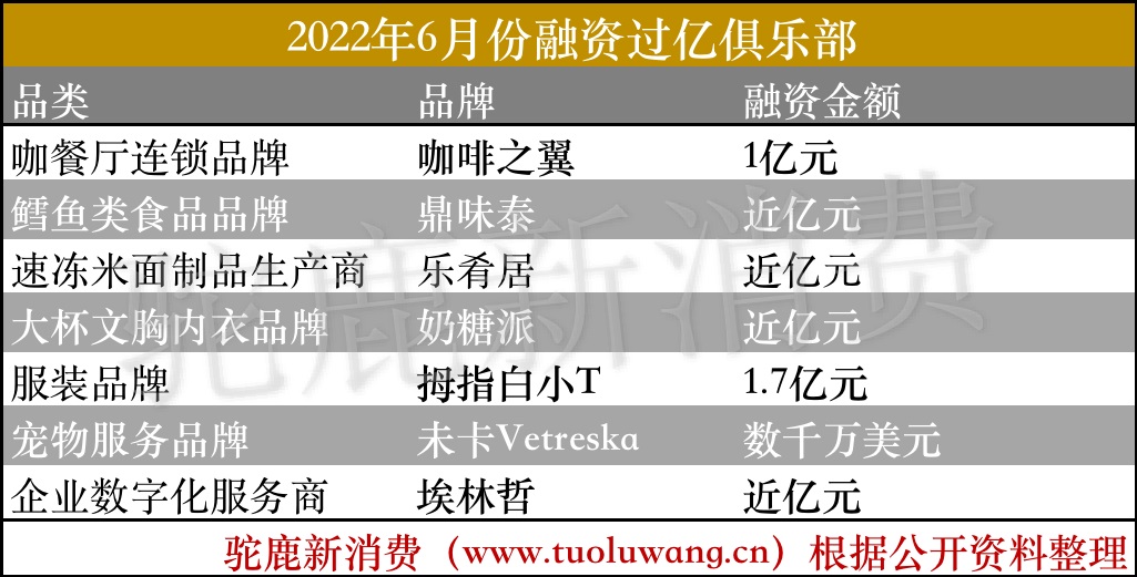 2022年6月份新消費產業(yè)融資月報