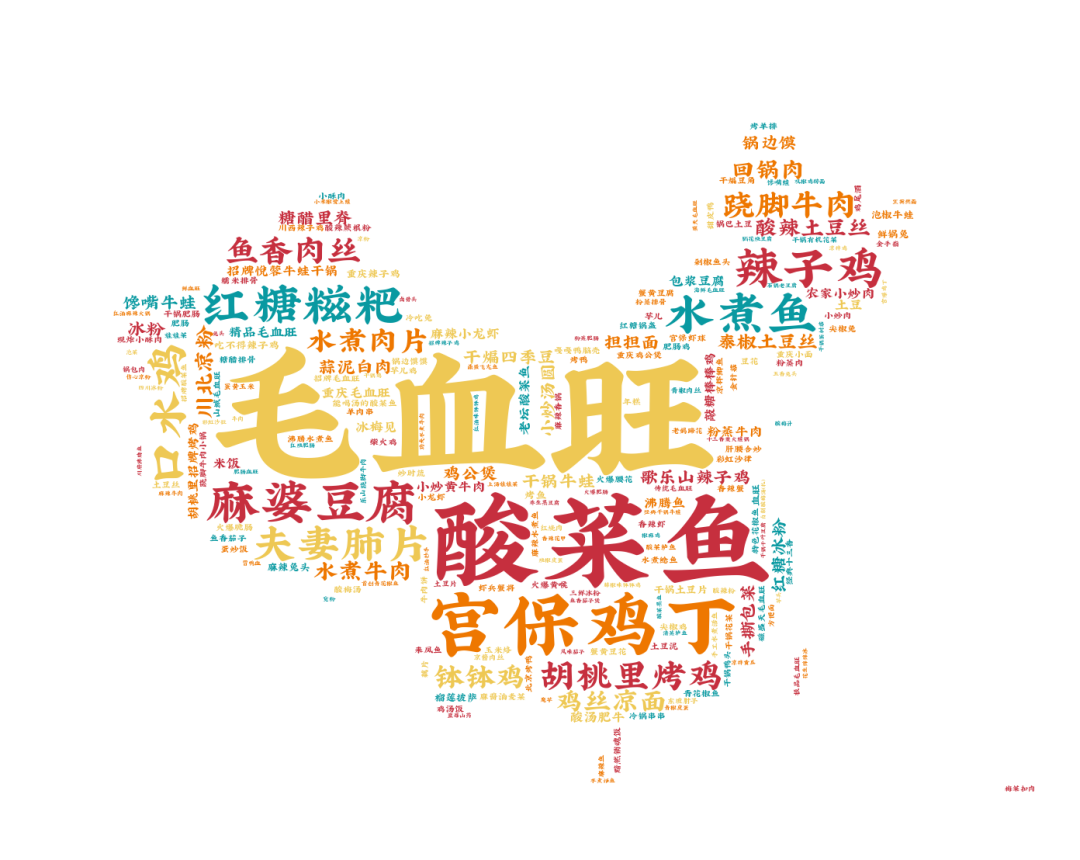 川菜品類最受歡迎的菜品依然是毛血旺、酸菜魚、宮保雞丁、麻婆豆腐、夫妻肺片等。