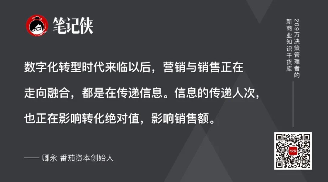 數(shù)字化轉(zhuǎn)型時代來臨以后,營銷與銷售正在走向融合,都是在傳遞信息。信息的傳遞人次,也正在影響轉(zhuǎn)化絕對值,影響銷售額。