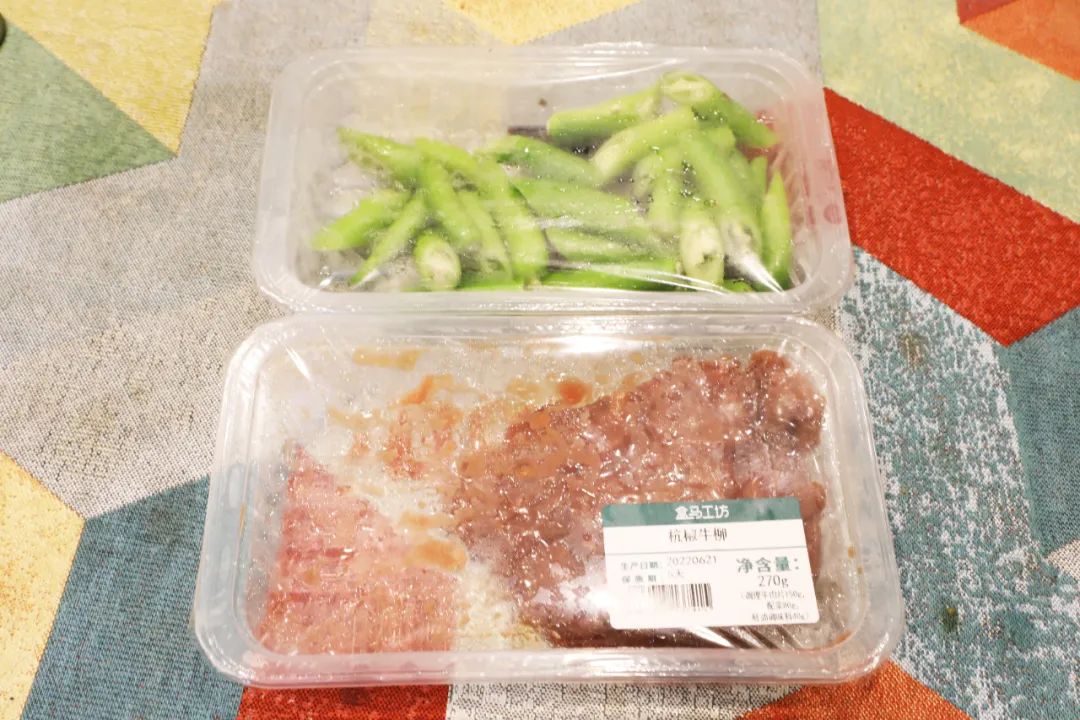 光看到配菜就覺得,同為牛肉,盒馬的預(yù)制菜比上一款也好太多了,大概這就是線下商超配送的優(yōu)勢,牛肉也不用解凍,大大節(jié)省備菜時間,配菜杭椒也很新鮮。