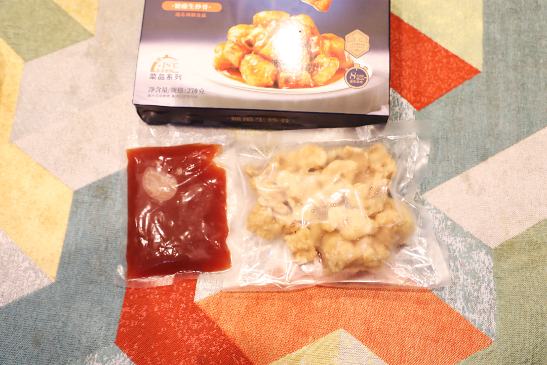 問題在于,它的骨頭渣實在是太多了一點吧,面衣也真的是太厚了,包裹的排骨上肉特別很少,感覺像是在吃酸甜炸面皮,肉不知所蹤,真的有點不夠良心,但是考慮到價格和烹飪時長,真的可以吃吃!