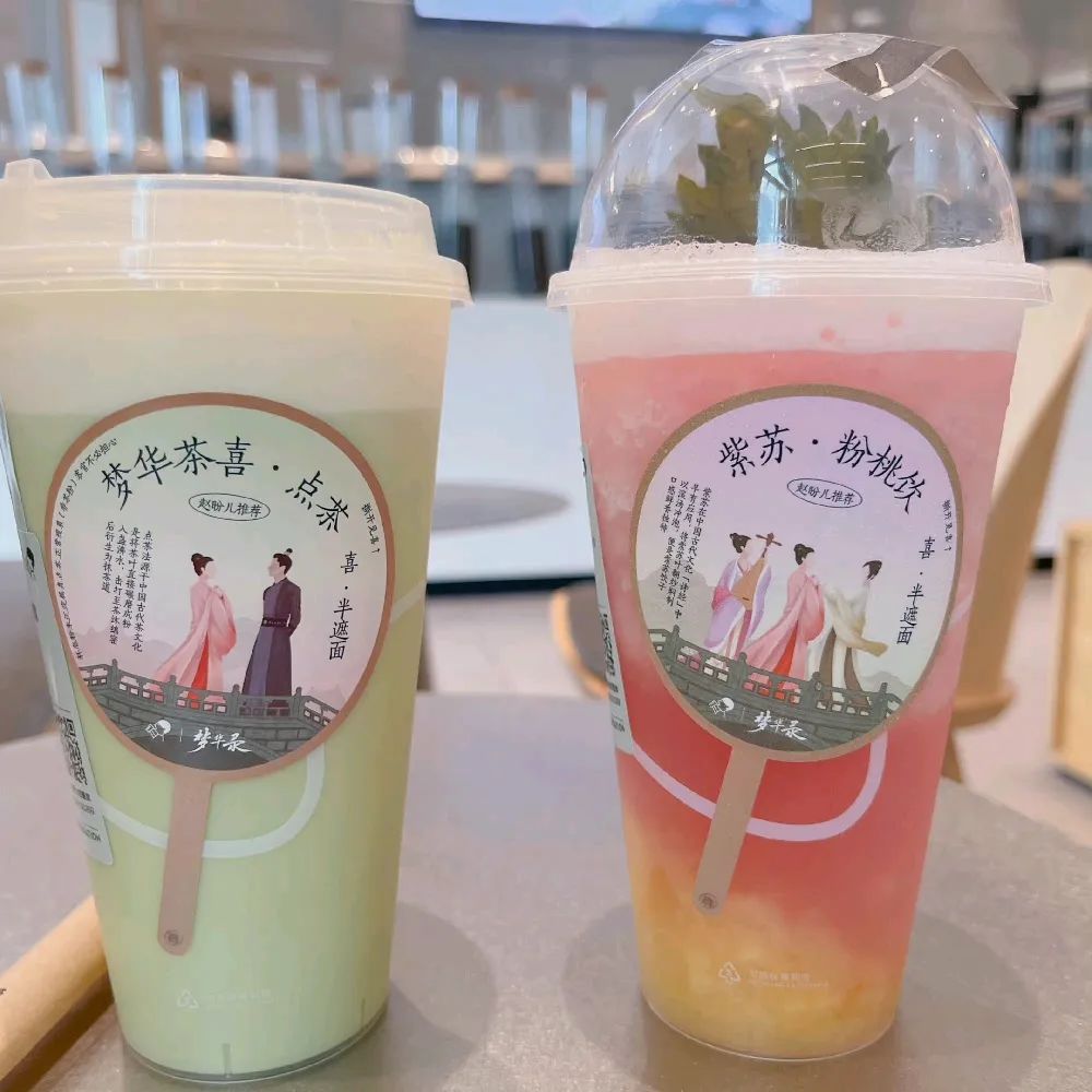 6月30日,《夢華錄》與喜茶聯(lián)名的兩款茶飲“紫蘇·粉桃飲”和“夢華茶喜·點茶”正式上架開售。