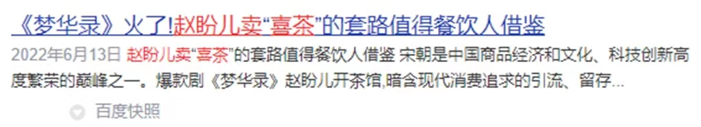 如果《夢華錄》是一部不溫不火的電視劇,那即使喜茶推出再多的聯(lián)名花樣也難以激起水花,正因為劇集有了熱度,所以聯(lián)名產品才能取得這么高關注度。