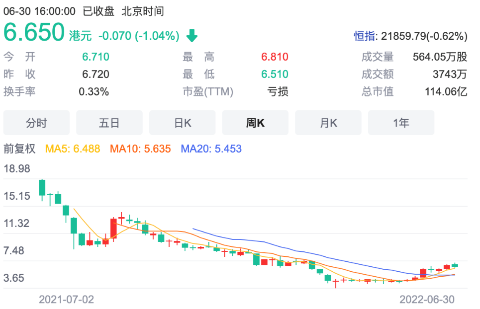 最終的成效如何?6月30日奈雪上市一周年的當(dāng)天,其股價(jià)報(bào)收6.650港元/股,市值較上市之初已蒸發(fā)超過6成。