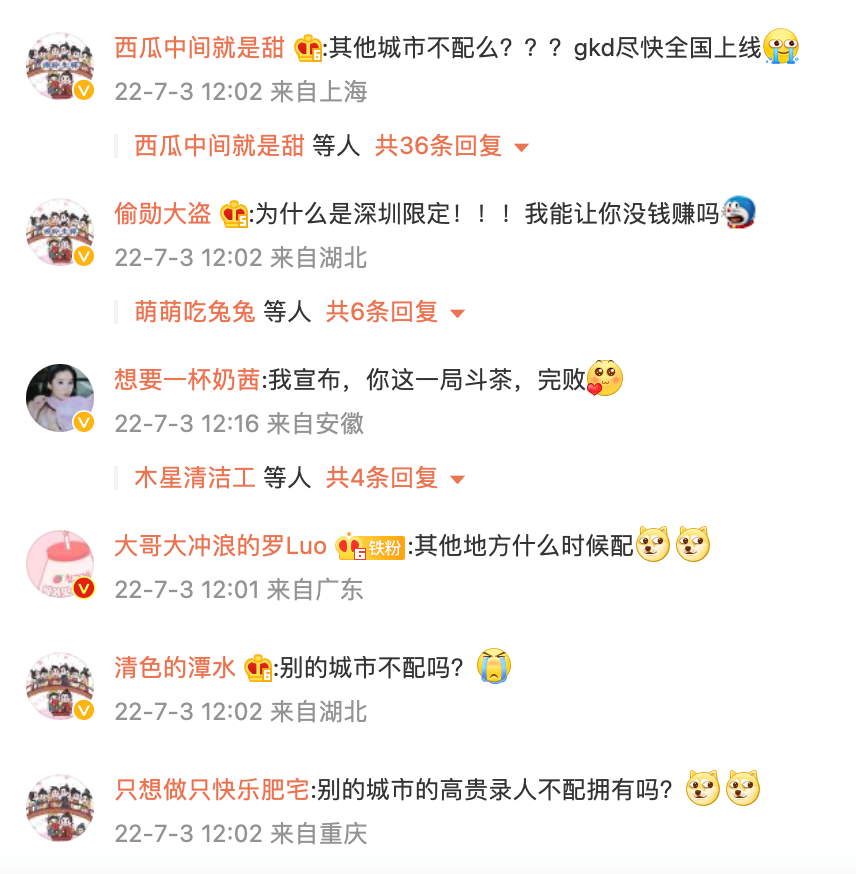 網(wǎng)友們不淡定了:“其他城市不配嗎?”“別的城市的高貴錄人不配擁有嗎?”“不要忘記了你的根,趙氏茶坊是從江南開出來的”“我宣布,你這一局斗茶,完!”