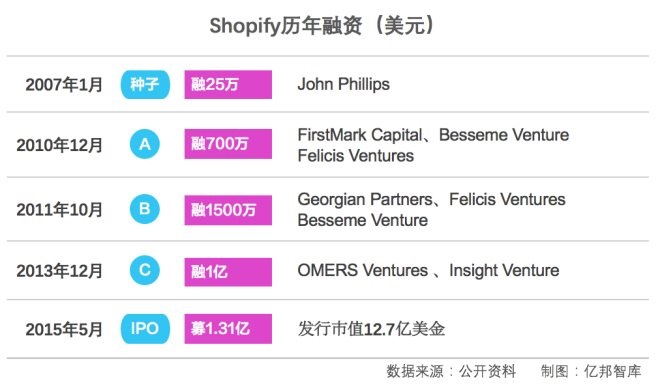 亮眼的業(yè)務(wù)增長,讓Shopify先后拿到柏尚投資(Besseme)、Georgian Partners等機(jī)構(gòu)兩輪總計2200元美元投資。資本加持下,圍繞中小商戶建站需求和開店的支付、物流、營銷需求,Shopify開始擴(kuò)大服務(wù)產(chǎn)品,并于2014年營收突破1億美元大關(guān)。