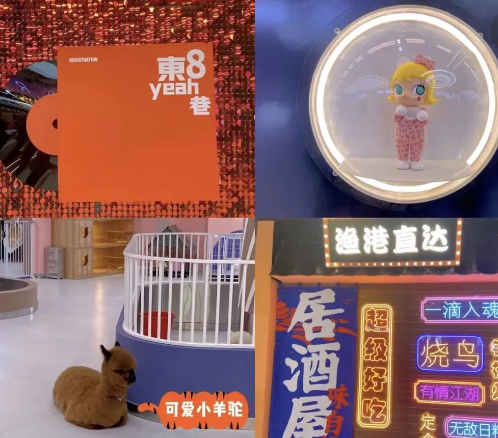 而像北京通州萬達(dá),為了吸引喜歡夜生活的年輕人,它把“吃+喝+潮玩”放到了一起,將以前人流量較少的B1層,直接變成美食夜經(jīng)濟(jì)小巷,名字也為了迎合夜晚取名“東8yeah巷”。