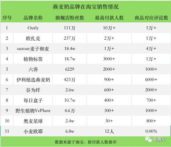 新腕整理了兩份燕麥奶品牌在淘寶和抖音銷售表,以Oatly線上業(yè)務情況作為參照,這些品牌經(jīng)營情況如何?