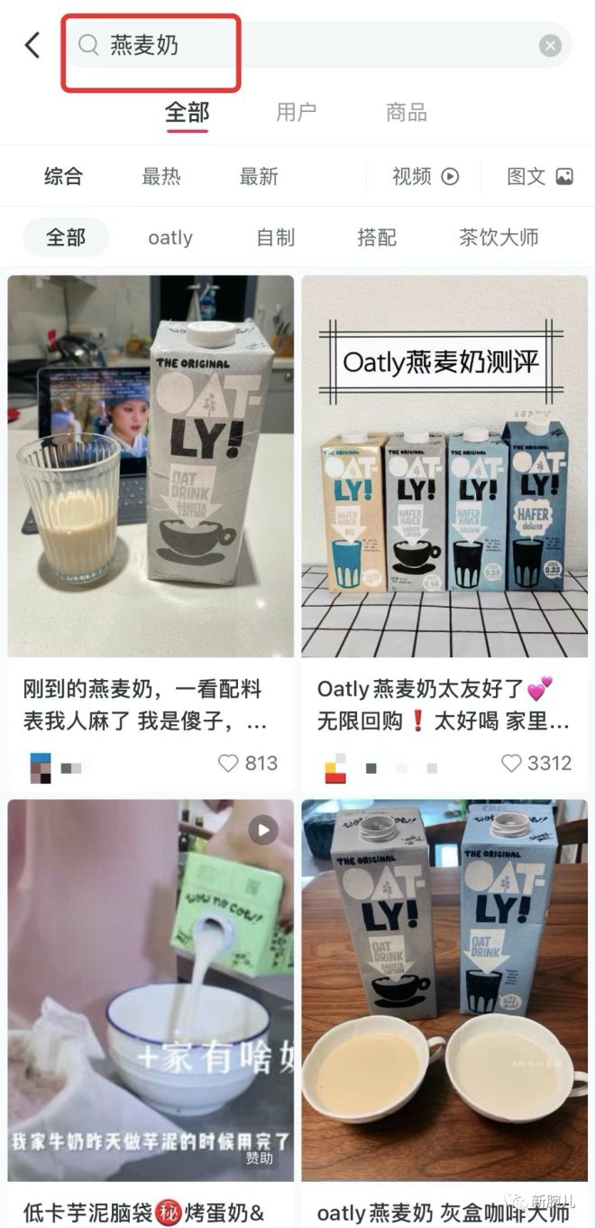 綜合淘寶和抖音數(shù)據(jù),Oatly已完全占據(jù)國內(nèi)燕麥奶線上零售市場。另外,新腕在小紅書搜索燕麥奶,最先出現(xiàn)Oatly,已經(jīng)成為燕麥奶品類代名詞。在此情況下,別的品牌只能通過營銷手段,以出圈。