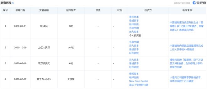 星期零在國內(nèi)涌現(xiàn)的眾多人造肉公司中,也算是較受資本青睞的一員。截至2022年1月,星期零已經(jīng)獲得第五輪高達1億美元的融資。