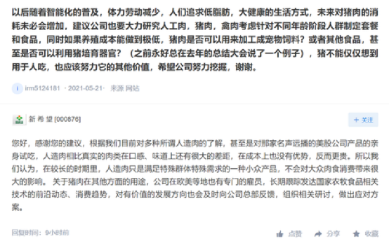 再者,農(nóng)業(yè)龍頭公司“新希望”也曾在某平臺中表示,認為人造肉在味道、價格都沒有優(yōu)勢,并不看好人造肉能夠爆發(fā)大量需求,短期內(nèi)是一部分的小眾產(chǎn)品。