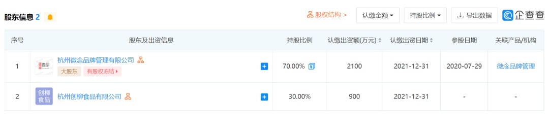 企查查顯示,李子柒螺螄粉廠家的股東為微念