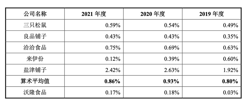 營(yíng)銷費(fèi)用率不低,研發(fā)費(fèi)用率極低。沃隆食品在招股書(shū)中表示,報(bào)告期內(nèi),公司研發(fā)費(fèi)用率低于同行業(yè)水平,主要系公司研發(fā)處于初期階段, 產(chǎn)品品類相對(duì)較少,前期投入較低。