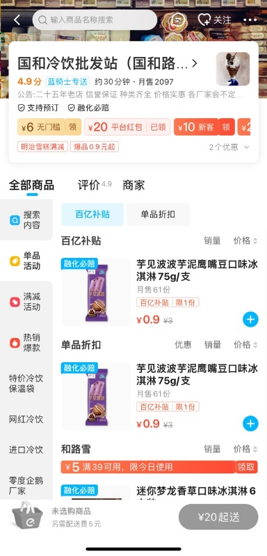 身為冰淇淋行業(yè)的“領(lǐng)頭羊”,和路雪自去年開(kāi)始和餓了么嘗試合作“融化必賠”項(xiàng)目。今年餓了么冰淇淋節(jié)期間,和路雪也牽手平臺(tái)在線上推出多項(xiàng)價(jià)格優(yōu)惠的網(wǎng)紅新品。和路雪發(fā)現(xiàn),經(jīng)過(guò)過(guò)去一年,更多消費(fèi)者嘗試在外賣平臺(tái)上購(gòu)買冰淇淋,特別是原本外賣餐飲用戶。