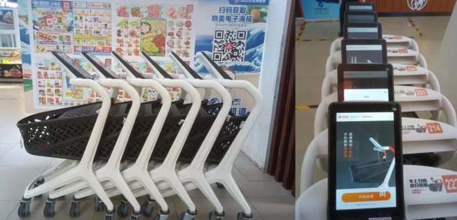 據(jù)悉,升級后的智能購物車具備高度模塊化、支持多點(diǎn)等多種支付方式、掃碼識別精準(zhǔn)快速等諸多優(yōu)點(diǎn),顧客可直接在購物車上的屏幕中領(lǐng)取并使用優(yōu)惠劵,實(shí)時結(jié)算。此外,二代智能購物車采用超輕材料車身,相比一代實(shí)用性更高,運(yùn)用場景更廣。