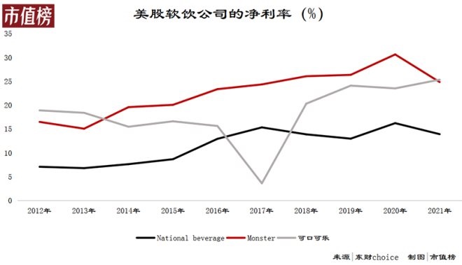 2022年,可口可樂(lè)、Monster、National beverage的平均市盈率分別為26.98、33.07、25.67。
